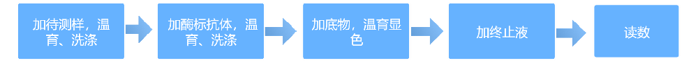 采用抗原与抗体的特异反应将待测物与酶连接,然后通过酶与底物产生颜色反应,用于定量测定。测定的对象可以是抗体也可以是抗原。在这种测定方法中有3种必要的试剂:①固相的抗原或抗体(免疫吸附剂)②酶标记的抗原或抗体(标记物)③酶作用的底物(显色剂)测量时,抗原(抗体)先结合在固相载体上,但仍保留其免疫活性,然后加一种抗体(抗原)与酶结合成的偶联物(标记物),此偶联物仍保留其原免疫活性与酶活性,当偶联物与固相载体上的抗原(抗体)反应结合后,再加上酶的相应底物,即起催化水解或氧化还原反应而呈颜色。其所生成的颜色深浅与欲测的抗原(抗体)含量成正比。这种有色产物可用肉眼、光学显微镜、电子显微镜观察,也可以用分光光度计(酶标仪)加以测定。其方法简单,方便迅速,特异性强。
